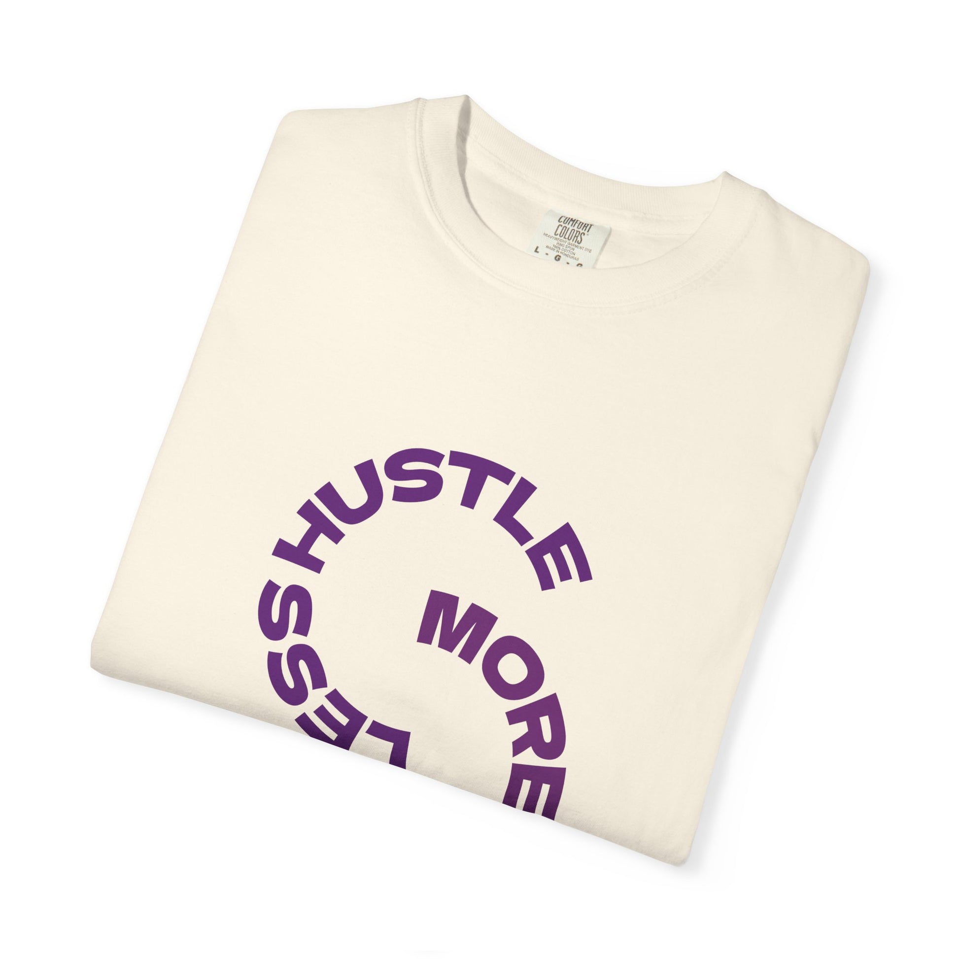 Soft, substantial, and quietly bold โ this garment-dyed tee carries a relaxed, lived-in feel that invites slow mornings and spontaneous afternoons. The circular purple graphic reads like a small manifesto: Hustle Less, More Jesus, with delicate โTake a Tripโ lettering beneath. It sits low on the chest, letting the message be both personal and wearable. The heavyweight cotton and garment-dyed finish give the shirt a gentle texture and muted color depth that ages beautifully with every wash. Wear it over jeans for coffee runs, layer it under a light jacket for evening worship, or pack it for a retreat where comfort and calm matter more than flash. This tee is for people who want their clothing to reflect steady faith and uncomplicated style โ honest, comfortable, and quietly intentional.