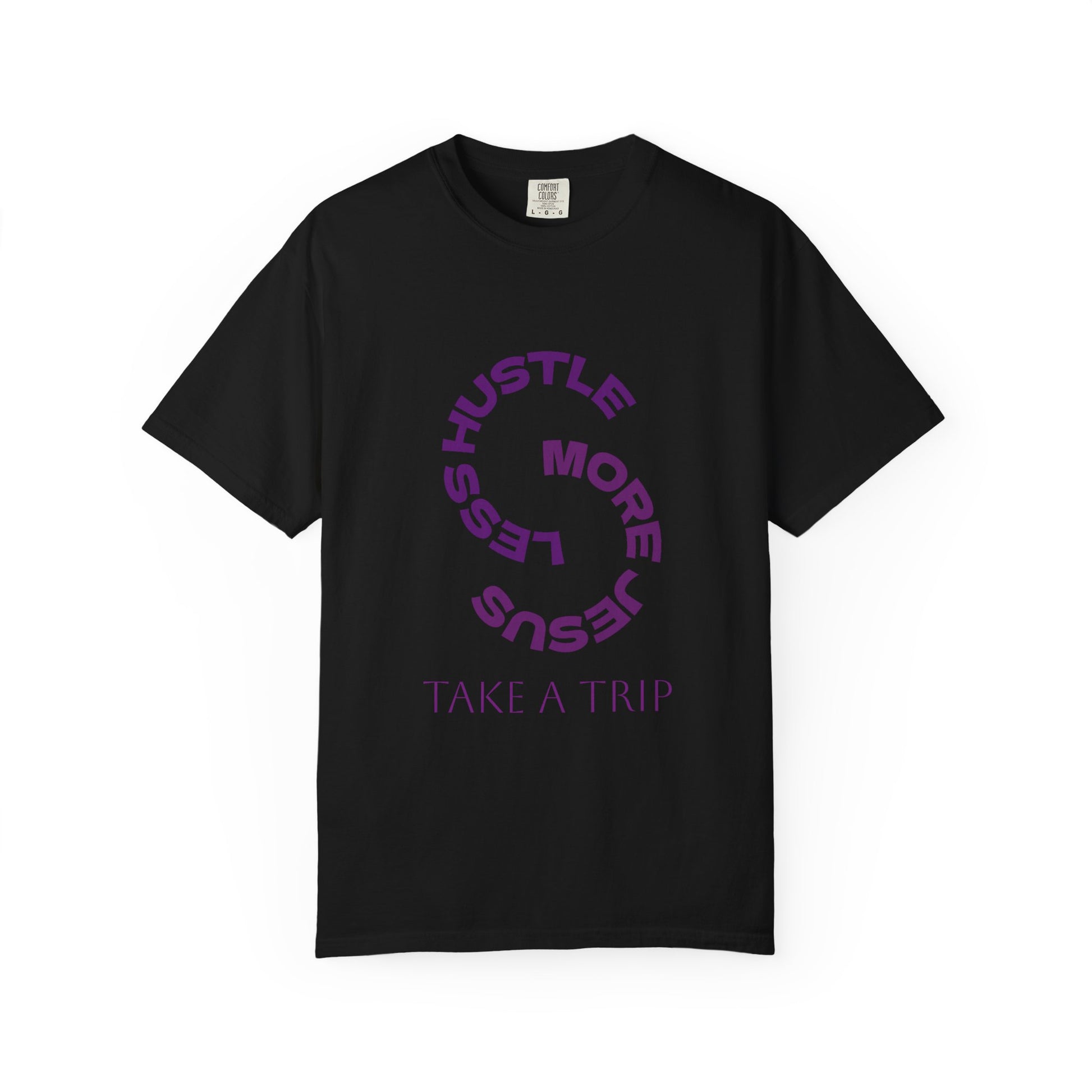 T-Shirt โ "Hustle Less, More Jesus" Spiritual Graphic Tee (Take a Trip)